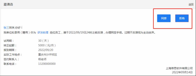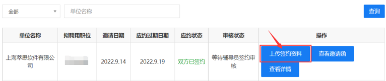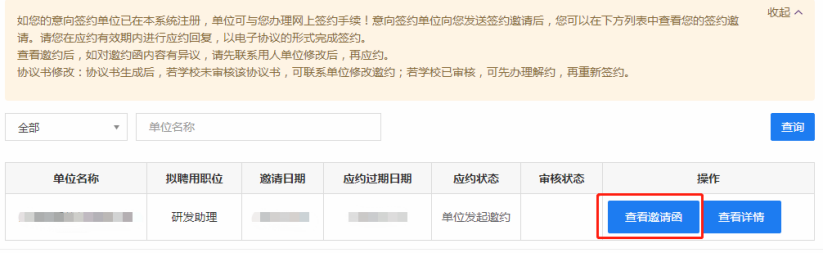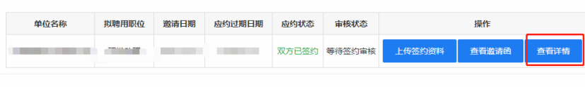1.进入“线上签约”菜单,查看单位邀约,选定签约单位,确定签约信息无误后,点击“同意”应约。