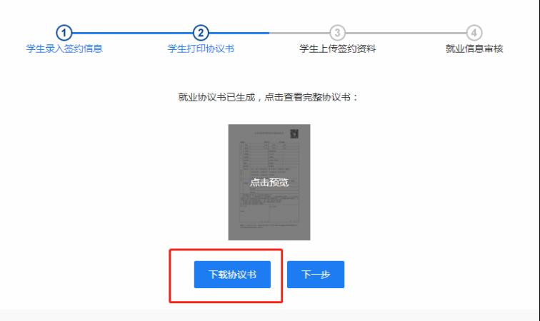 2.协议书生成后,下载打印协议书(一式四份),交用人单位盖章。