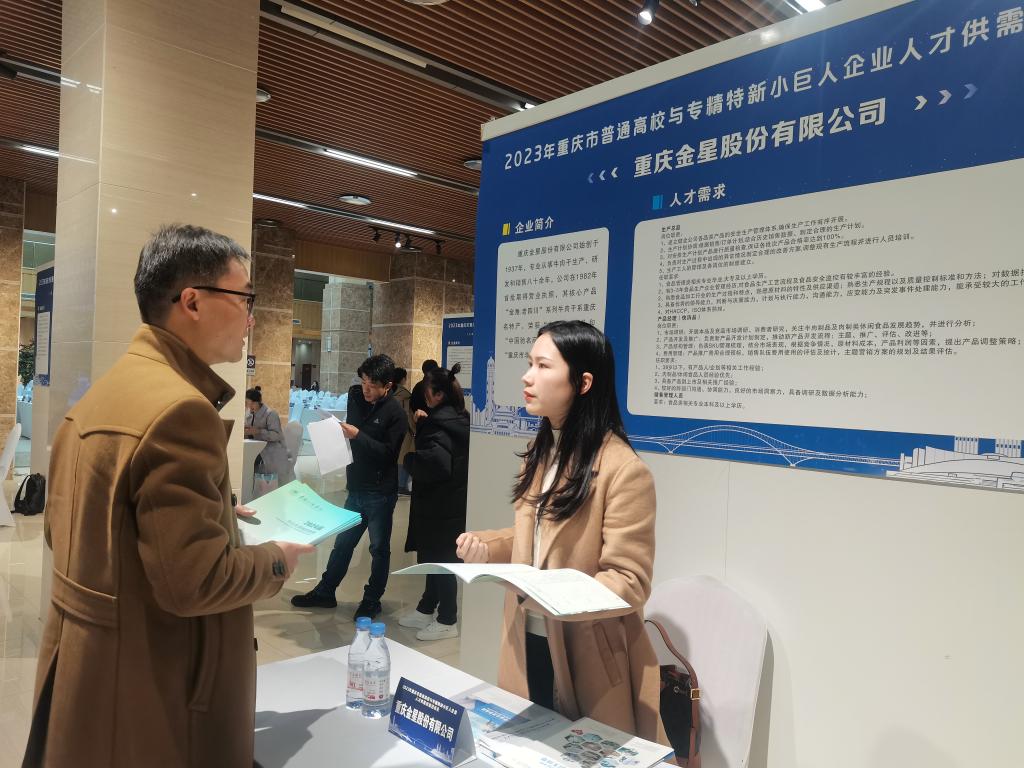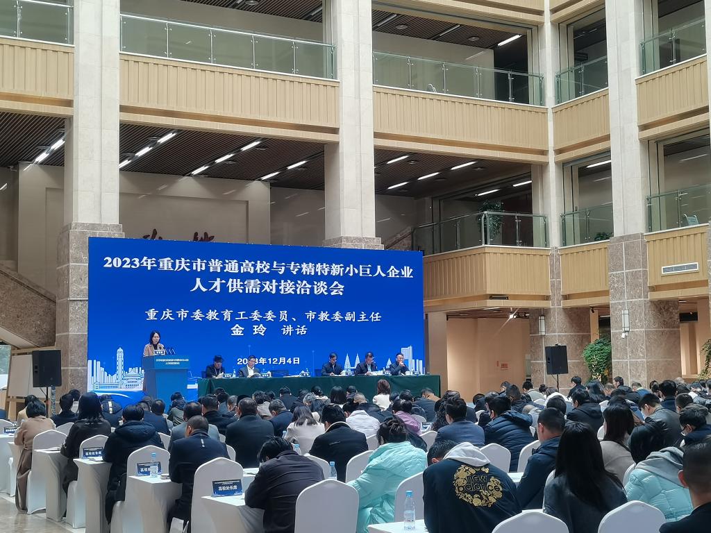12月4日,2023年重庆市普通高校与专精特新“小巨人”企业人才供需对接洽谈会在重庆师范大学举行。我校招生就业处处长刘文菘带领相关科室人员参加,并于“小巨人”企业深入进行对接洽谈,取得丰硕成果。