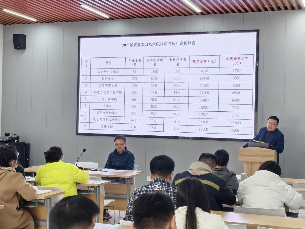 3月18日下午,我校2025年春季学期第一次就业工作会在众创空间108室召开,招生就业处相关科室、各学院就业专干及2025届毕业生辅导员参加会议。