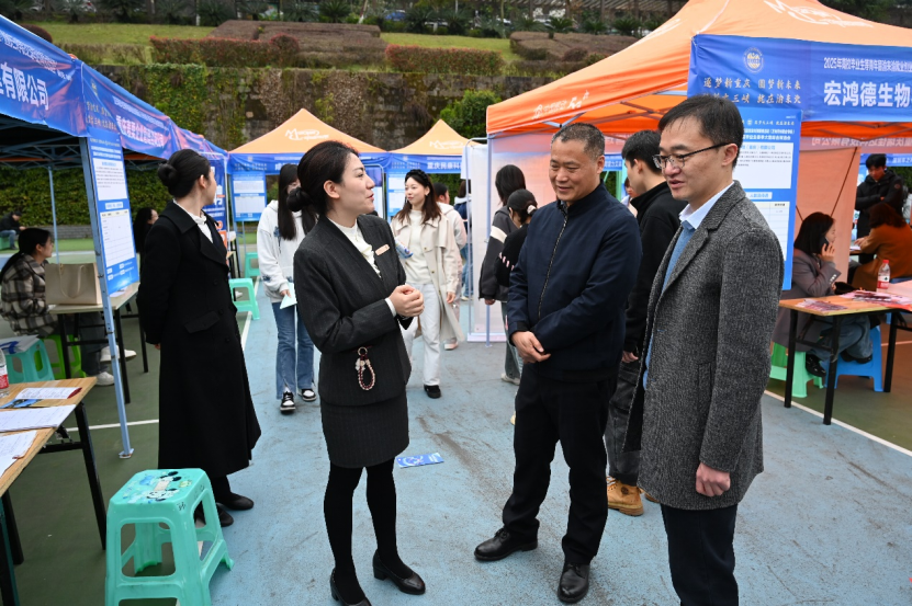 许光洪亲临活动现场,与渝州宾馆酒店管理公司、九龙万博集团、重庆平伟实业股份有限公司等企业代表亲切交流,详细了解企业用人需求及我校毕业生在企业中的发展情况。他强调,学校就业部门和二级学院要主动对接企业,结合市场需求及时调整人才培养模式,拓宽毕业生就业渠道;同时要加强就业指导工作,引导毕业生扎根基层,提升就业竞争力,为地方经济社会发展贡献力量。