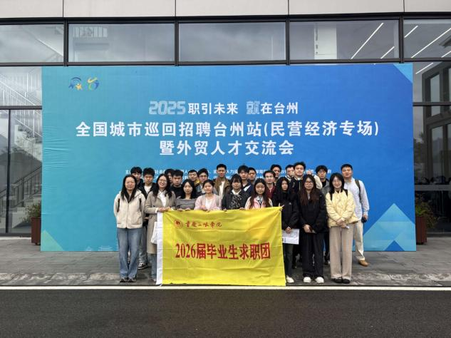 11月13日,“职引未来·就在台州”2025年全国城市巡回招聘台州站(民营经济专场)暨外贸人才交流会在台州国际博览中心举行,全国12个省份30余所高校超8000名学子到场应聘。学校招就处组织21名2026届毕业生参与活动,为求职之路探寻优质机遇。