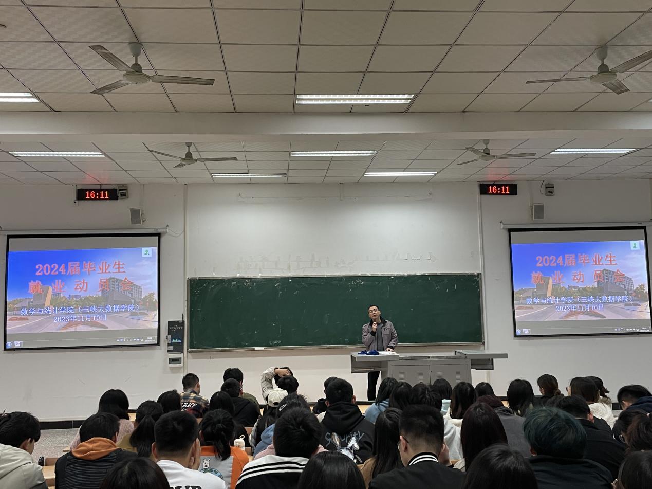为抓紧落实学校2024届本科毕业生就业工作推进会会议精神,进一步帮助毕业生把握好秋招关键求职期,切实促进2024届毕业生更高质量就业,根据招就处《关于进一步加强2024届毕业生求职指导的紧急通知》文件要求,11月10日至13日期间,数学与统计学院分别在明辨2栋206、明辨1栋104召开2024届数学与应用数学系、统计学系、信息与计算科学系、大数据管理与应用系就业动员会,学院领导班子成员、各系部主任、毕业班辅导员及全体2024届毕业生参加会议。会议由毕业班辅导员张婷婷主持。