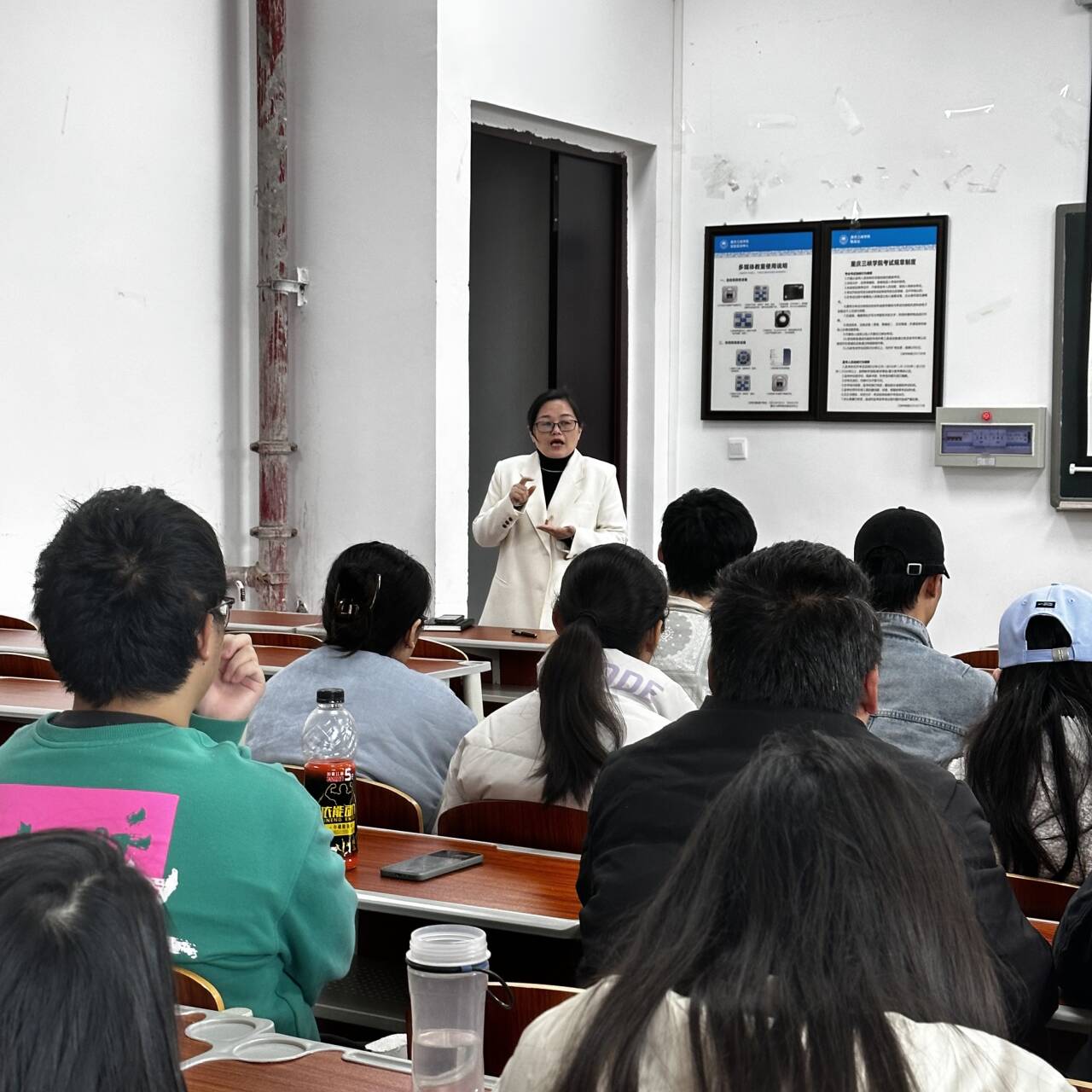 学院副院长刘芳平结合优秀校友案例,解答学生在学业和求职中遇到的问题,特别针对毕业设计和求职心态的调整进行了详细的说明,鼓励同学们要客观分析自身优势及行业特点,端正求职态度,先就业后择业,把握求职主动权。