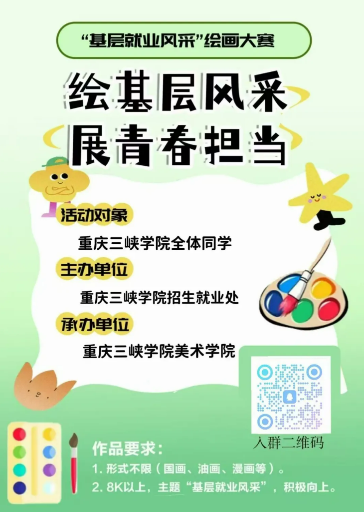 基层是梦想起航的地方,是青春绽放的舞台。你是否渴望用画笔描绘青春梦想,展现基层就业的独特魅力?现在,机会来了!2025年5月12日-5月27日,betway西汉姆联特别举办大学生"基层就业风采"主题绘画比赛,诚邀你拿起画笔,用色彩与线条书写基层就业的动人故事。近年来,越来越多的大学生选择投身基层,在广袤的乡村、社区和一线岗位上挥洒汗水,为基层发展贡献智慧和力量。他们用实际行动诠释责任与担当,展现了新时代大学生的风采。为弘扬基层就业精神,激励更多同学关注基层、投身基层,学校特举办此次绘画比赛,让同学们用艺术形式展现基层就业的魅力与价值。