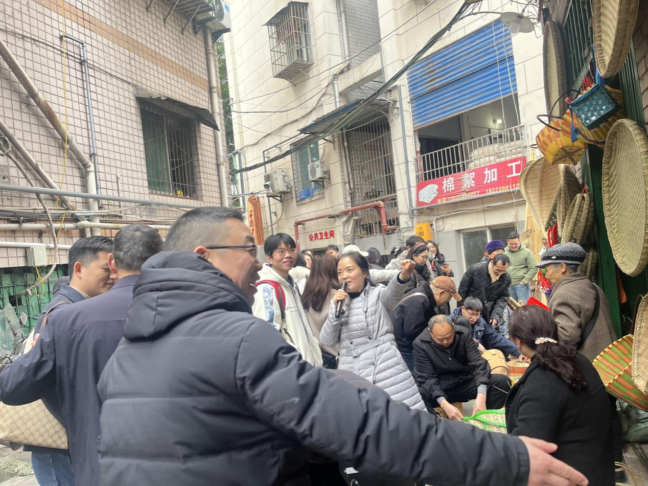 旧城老街的调研聚焦于城市更新活化与文旅融合发展。调研组深入老街核心区域,实地走访了照相馆、铁匠铺、米花糖铺等一批特色商铺,围绕历史文脉保护、“乡愁经济”培育以及社区在协调商户、服务游客中的治理角色等议题展开交流。此外,调研组还特别考察了五桥河沿岸的防洪工程与生态治理措施,详细了解其在保障老街安全、提升滨水景观品质方面的作用与实践成效。
