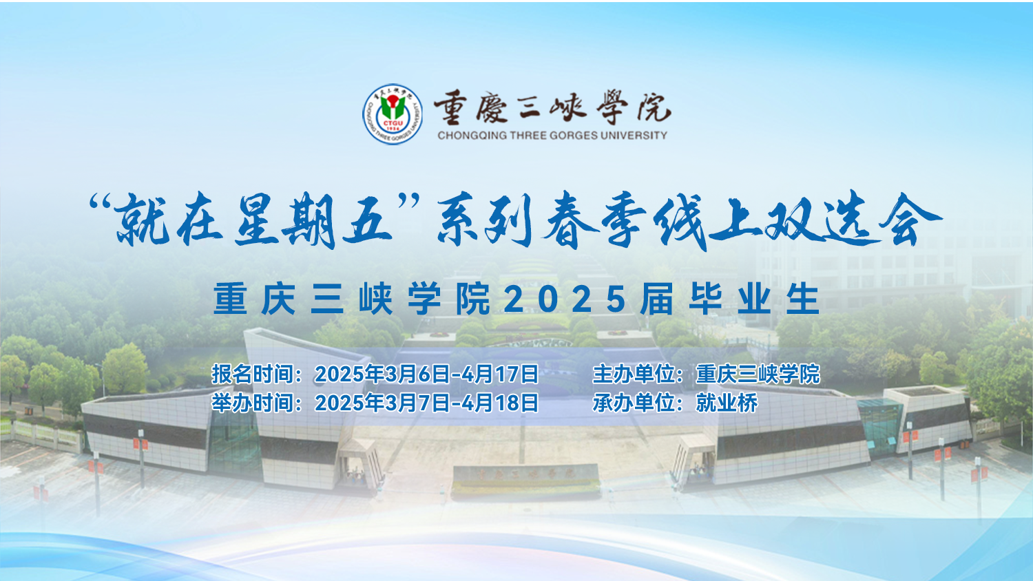 为深入贯彻落实党中央、国务院“稳就业”“保就业”的决策部署,积极响应教育部号召,我校积极深入推进2025届毕业生就业工作,充分搭建用人单位和毕业生网络双选平台,实现人才精准对接,促进毕业生更加充分更高质量就业,我校定于2025年3月7日-2025年4月18日举办betway西汉姆联2025届毕业生“就在星期五”系列春季线上双选会,诚邀各用人单位选聘我校优秀毕业学子。现将有关事项通知如下: