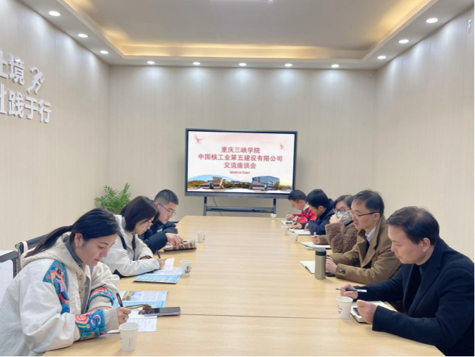 11月26日上午,中核五公司三门核电项目部综合管理部副经理刘瑞婷一行3人到校洽谈校企合作事宜,招生就业处处长刘文菘、土木学院党总支书记罗雪、环境与化学工程学院党总支书记刘健等参加洽谈交流活动。