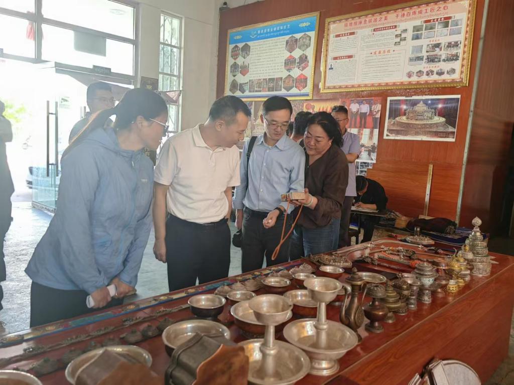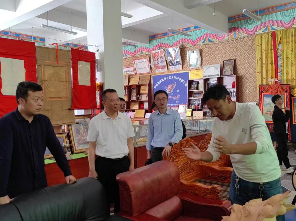 期间, 臧小林一行与察雅县委书记其珠多吉,县委常委、副县长张亮、副县长欧渊等同志座谈交流,并实地参观了察雅县矿植物颜料有限公司、察雅县麦堆金银器手工艺传承合作有限公司以及央青唐卡传承有限公司等当地优质企业,深入了解企业运营状况和特色产业发展情况,为校政企的深度合作奠定了坚实基础。